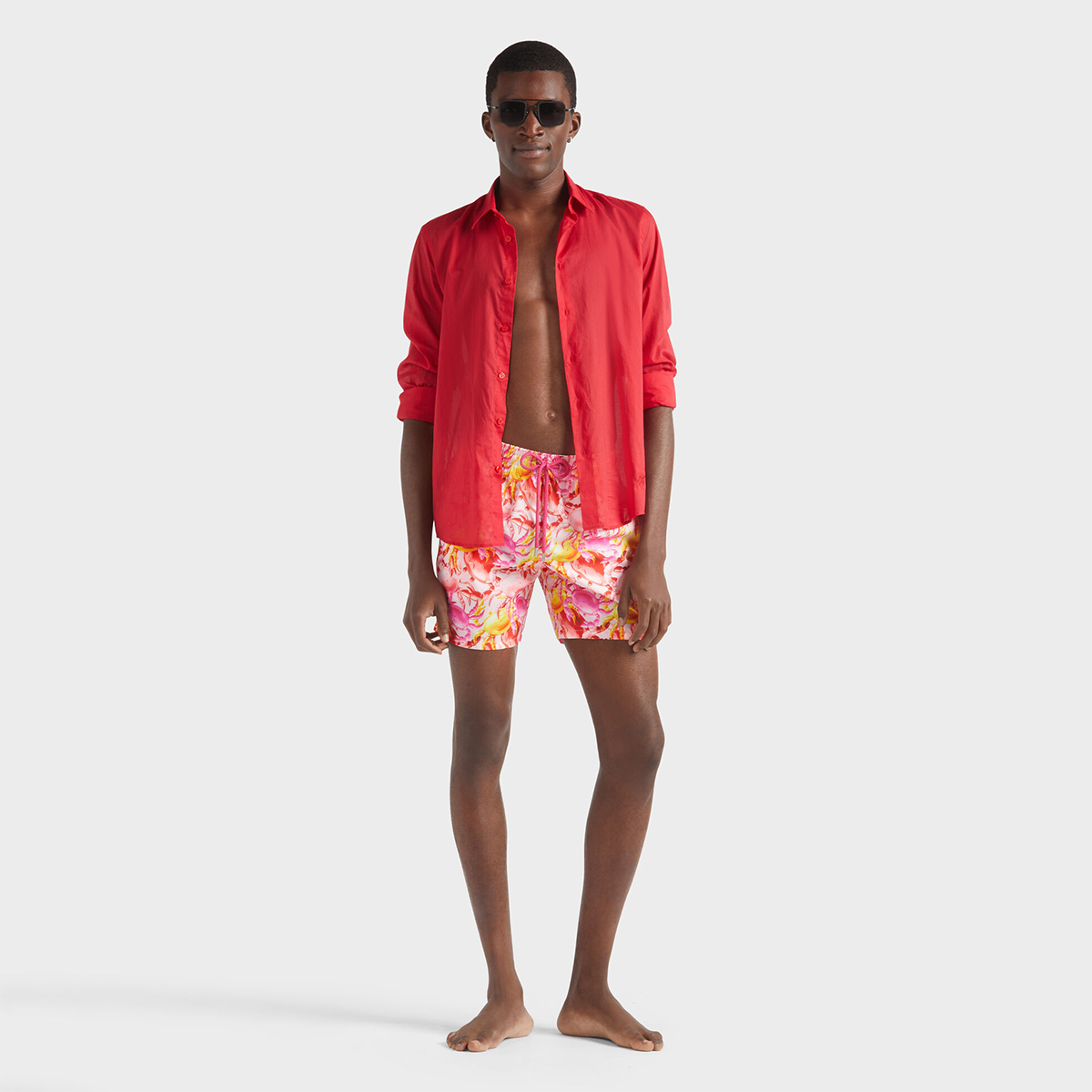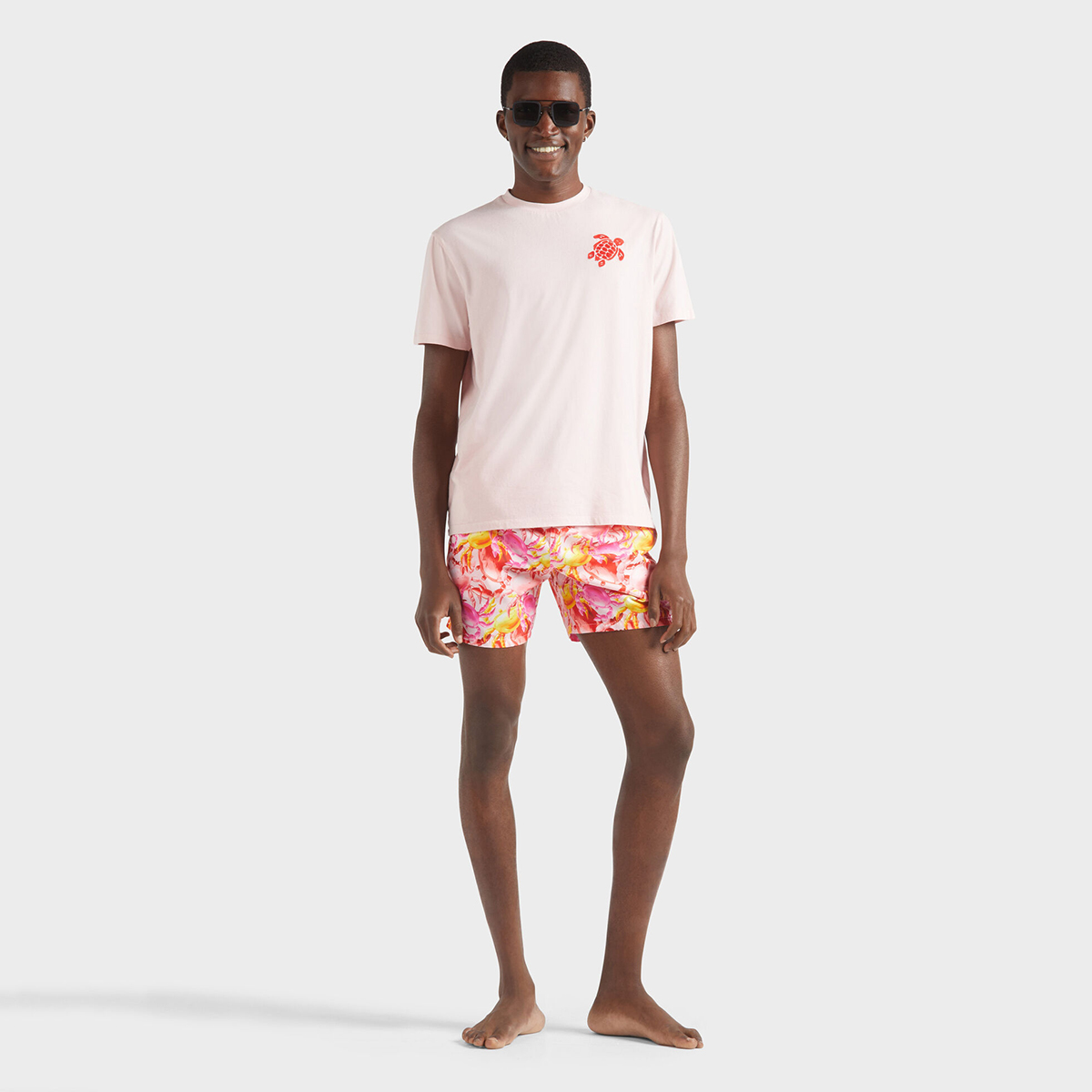 Bu çok hafif kumaşı ile dikkat çeken mayo, katlanarak arka cebine sığıyor ve üzerinde kauçuk Vilebrequin logosu yer alan bir keseye dönüşebiliyor.